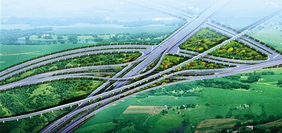 南四環(huán)主線依次下穿規(guī)劃鄭萬(wàn)客專及鄭西貫通線,由地面道路、下穿地道和高架橋組成。高架橋部分全長(zhǎng)771.5米,為雙向六車(chē)道,設(shè)計(jì)時(shí)速為80千米。