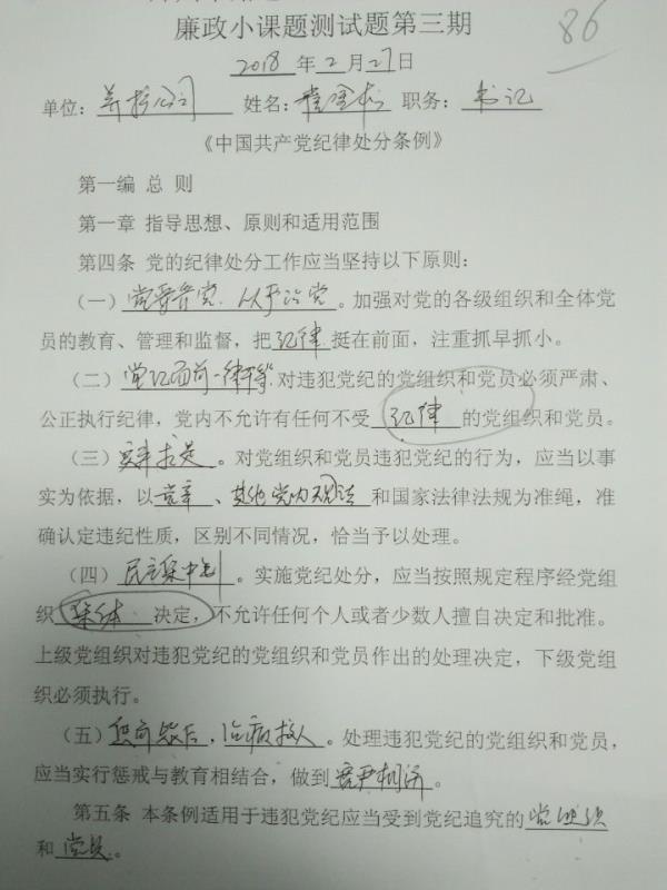 近日,鄭州市路通公司黨委在公司周例會的廉政小課堂上“正式推出”一項新舉措——廉政知識專項測試。測試內容涉及中央八項規(guī)定精神和省市相關規(guī)定,聚焦各類黨紀政紀條例法規(guī)。考試采取閉卷的形式,對與會的公司領導、中層干部、直屬單位的領導班子進行一次嚴格的黨風廉政教育。試卷由公司紀委統(tǒng)一評分,并進行公示,成績在80分以下人員必須補考。