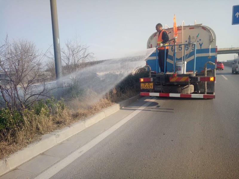 強(qiáng)化綠化管理,打造綠色環(huán)境。抓住綠化補(bǔ)栽的有利季節(jié),對(duì)管養(yǎng)線路的綠化苗木缺失進(jìn)行補(bǔ)栽,并對(duì)綠化帶進(jìn)行澆灌和清洗,保障綠化效果良好。同時(shí),對(duì)干線公路兩側(cè)遮擋急彎、陡坡等警示標(biāo)志的樹枝及枯枝、與高壓線交叉的樹枝進(jìn)行修剪,以解決路樹給交通安全帶來的隱患。