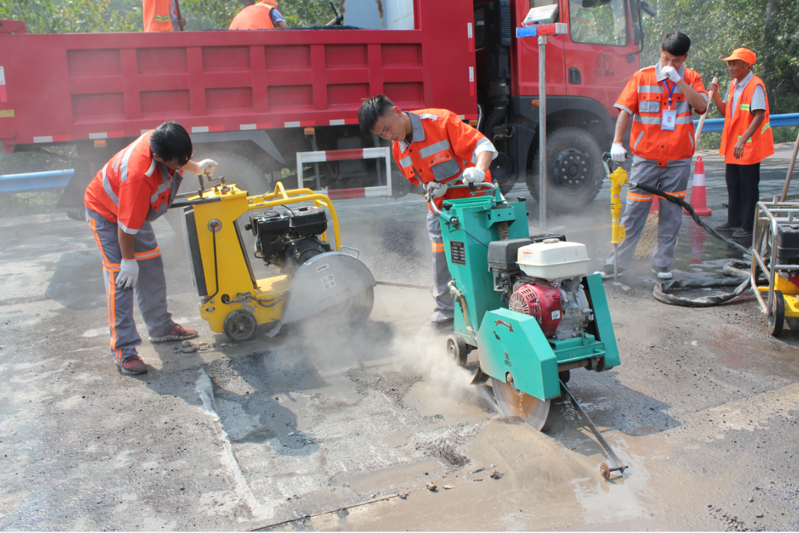 為大力宣傳“路通養(yǎng)護”的優(yōu)良形象和工作實力,公司調(diào)配和出動了2臺壓路機、2臺切割機、2臺液壓動力站、2臺發(fā)動機和1臺霧炮灑水車,以及二十余人的后勤保障人員,分別負責機械配合與后勤服務工作,全力保障比賽的順利進行。