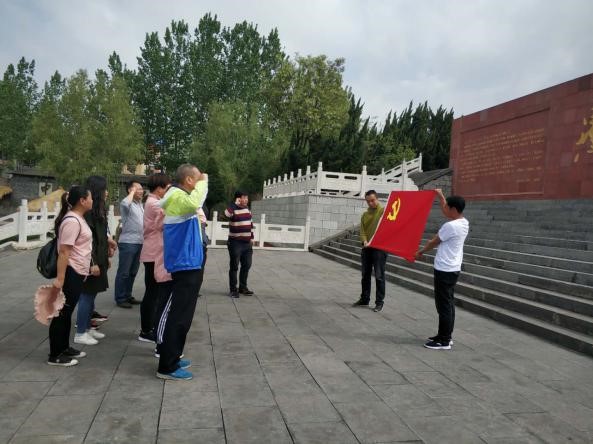 最后,全體黨員在鐫刻著毛主席題詞“愚公移山,改造中國”的影壁下列隊(duì),面對黨旗莊嚴(yán)地重溫了入黨時所發(fā)下的誓言:“我志愿加入中國共產(chǎn)黨,擁護(hù)黨的綱領(lǐng),遵守黨的章程,履行黨員……!