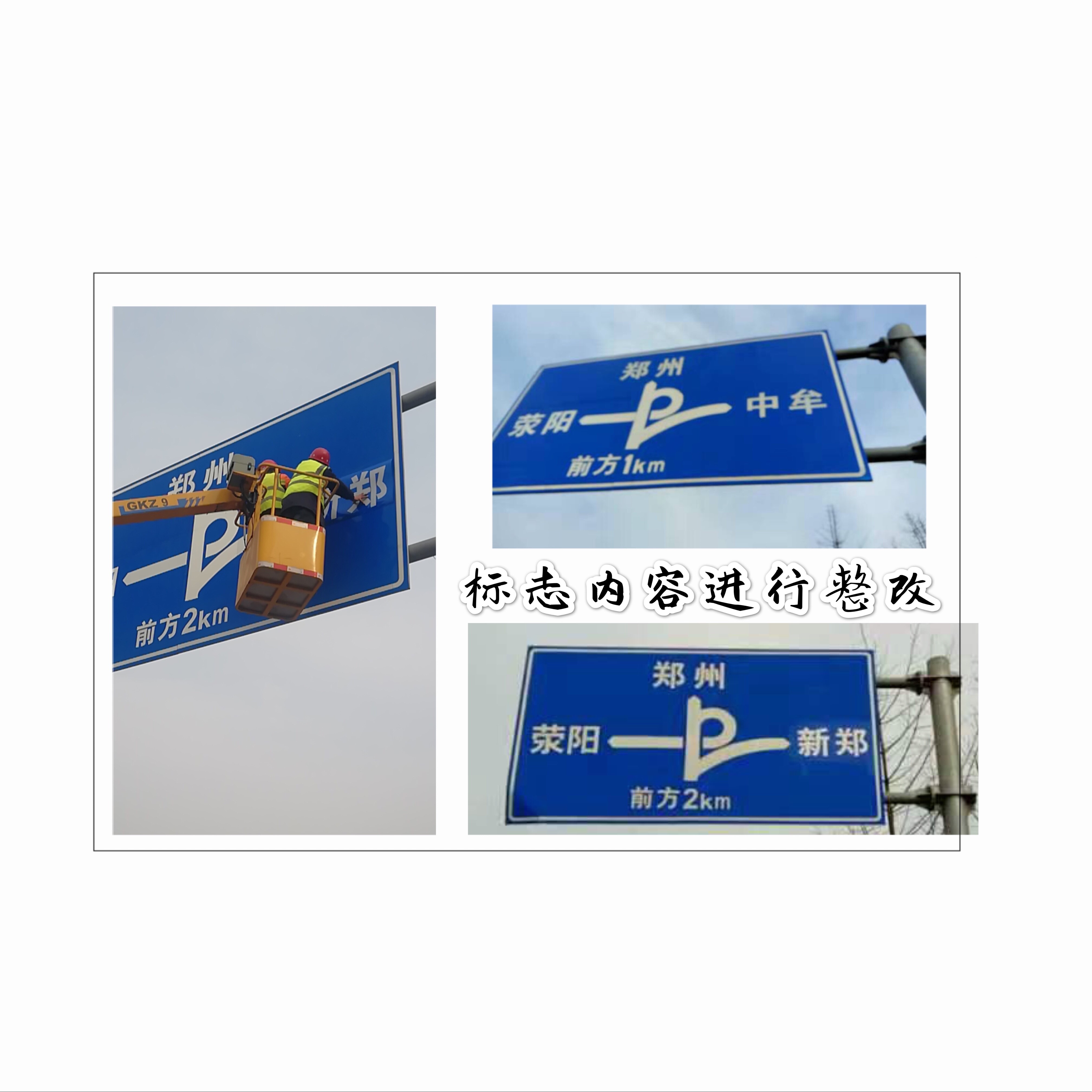 12月16日上午,接到市公路局通知,要求對(duì)鄭登快速通道城鄉(xiāng)結(jié)合部南三環(huán)至三李段的交通標(biāo)志內(nèi)容進(jìn)行調(diào)整、部分標(biāo)志進(jìn)行維修。接到任務(wù)后,我們迅速組織技術(shù)力量進(jìn)行沿線調(diào)查,對(duì)此區(qū)域內(nèi)需要調(diào)整的9個(gè)標(biāo)牌進(jìn)行字體尺寸和間距進(jìn)行測(cè)量,同時(shí)迅速調(diào)回正在G234施工的隊(duì)伍,對(duì)需要維修的1處標(biāo)志進(jìn)行拆除。