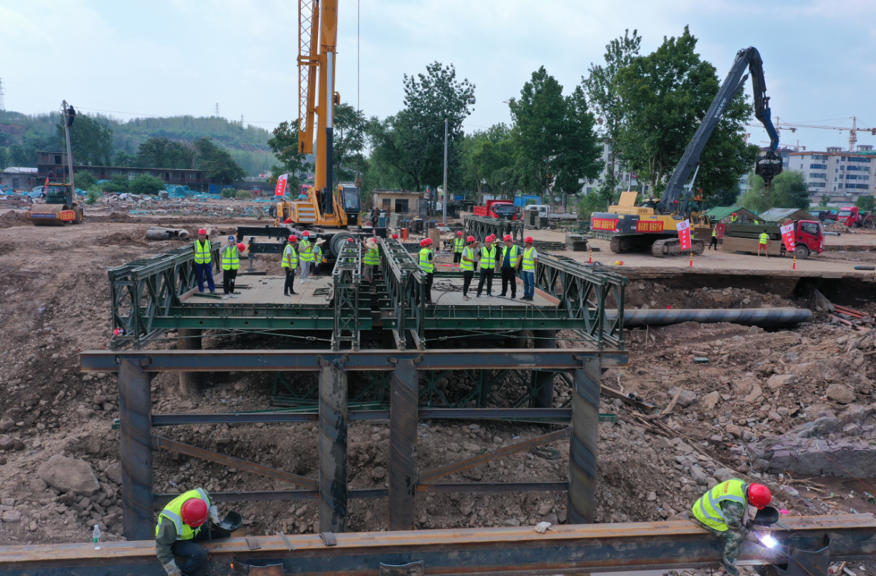 汛情就是命令,搶險就是責任。據不完全統計,路通公司承擔的大大小小搶險工程50余項,涉及滎陽、鞏義、上街、新密等地,涵蓋城市快速路、國省干線公路和農村地方道路。整個搶險期間,所有人員吃住在現場,人歇機不停,全力推進施工進度,確保第一時間恢復道路通行,為及時開展災后援助爭取寶貴時間。同時,路通公司黨委把搶險救災施工一線作為檢驗黨史學習教育活動開展成效的主戰(zhàn)場,公司迅速組建黨員搶險突擊隊,沖鋒在第一線,戰(zhàn)斗在最前沿,他們不怕苦、不怕累,高效完成搶險任務,刷新了路通速度,展示了路通力量。涌現出了以陸慶宇、尹曉軍、邢孟濤等為代表的防汛救災先進典型,他們不分晝夜、攻堅克難,用40個小時搶通鞏義市米河鎮(zhèn)第一座鋼便橋——水頭村橋,7天搶通鞏義市米河鎮(zhèn)第一座通車的下承式裝配式鋼便橋,1天1夜搶通G234滎陽王宗店村塌方段便道,受到省市交通部門、當地政府和群眾的一致稱贊。