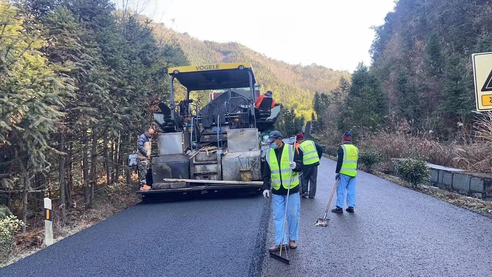 G330洞合線災(zāi)毀恢復(fù)及路面修復(fù)工程完成瀝青面層主體結(jié)構(gòu)施工