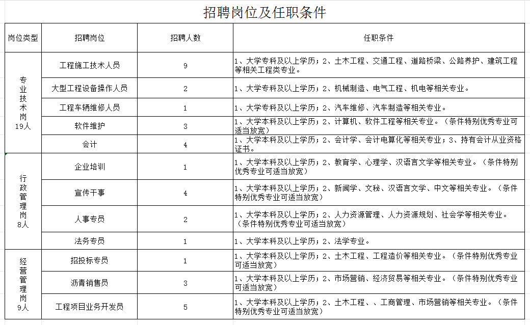 專業(yè)技術人員、行政管理人員、經(jīng)營管理人員。(招聘具體崗位及任職條件詳見下圖)。