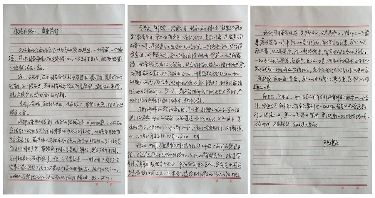 鑒古可知今,學(xué)史可明智。歷史是最好的教科書(shū),不斷重溫黨和人民共同走過(guò)的光輝歷程,從革命的歷史中汲取智慧和力量。通過(guò)為期幾天的學(xué)習(xí),我不僅對(duì)歷史有了更深入的了解,也獲得了一種積極向上,勇往直前的精神狀態(tài)。這些寶貴的體會(huì)將激勵(lì)著我,作為一名普通黨員來(lái)說(shuō),最好的詮釋這份精神的存在,就是以實(shí)際行動(dòng)投身于工作和學(xué)習(xí)中去,牢記長(zhǎng)征精神,珍惜當(dāng)下,遇到困難,迎難而上,立足自身工作,堅(jiān)守崗位職責(zé),懷有矢志奮斗的心,無(wú)私奉獻(xiàn)的精神,努力爭(zhēng)創(chuàng)一流工作業(yè)績(jī),開(kāi)拓公路事業(yè)發(fā)展新局面。
