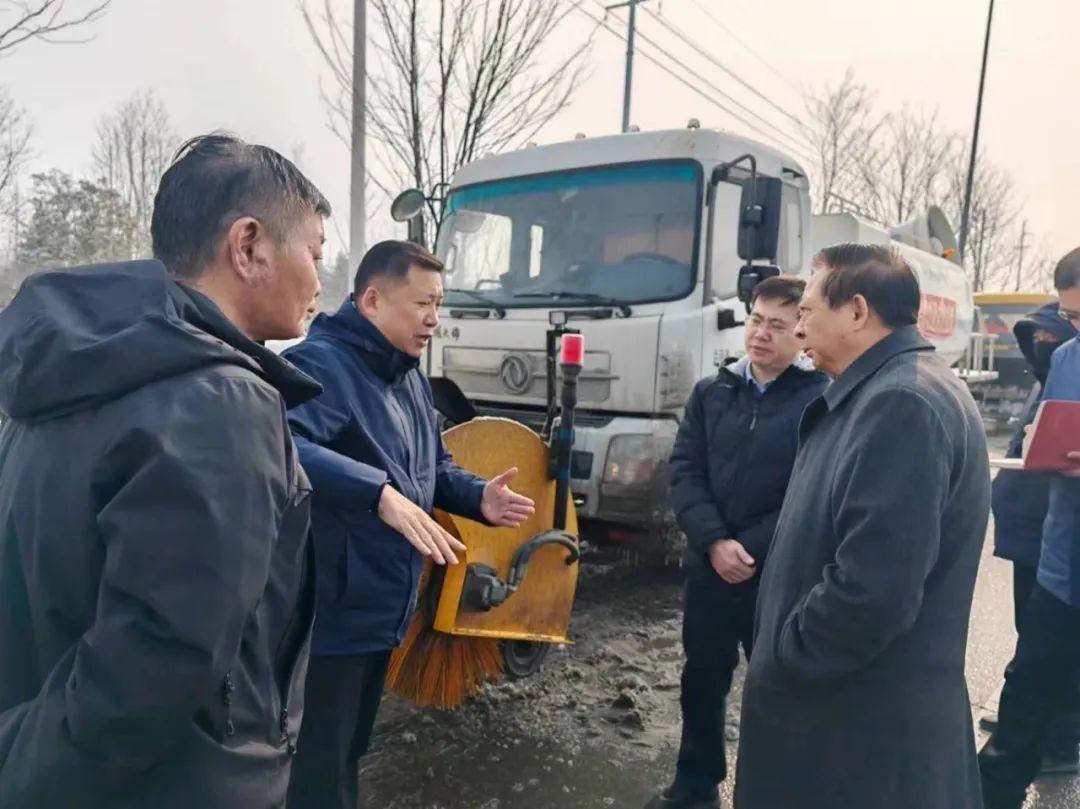 2024年2月5日上午,河南省交通運輸廳副廳長唐彥民一行在鄭州市公路事業(yè)發(fā)展中心副主任郭宇航、養(yǎng)護(hù)技術(shù)處處長侯林杰的陪同下前往G107新線實地查看路通公司除雪保暢工作開展情況。