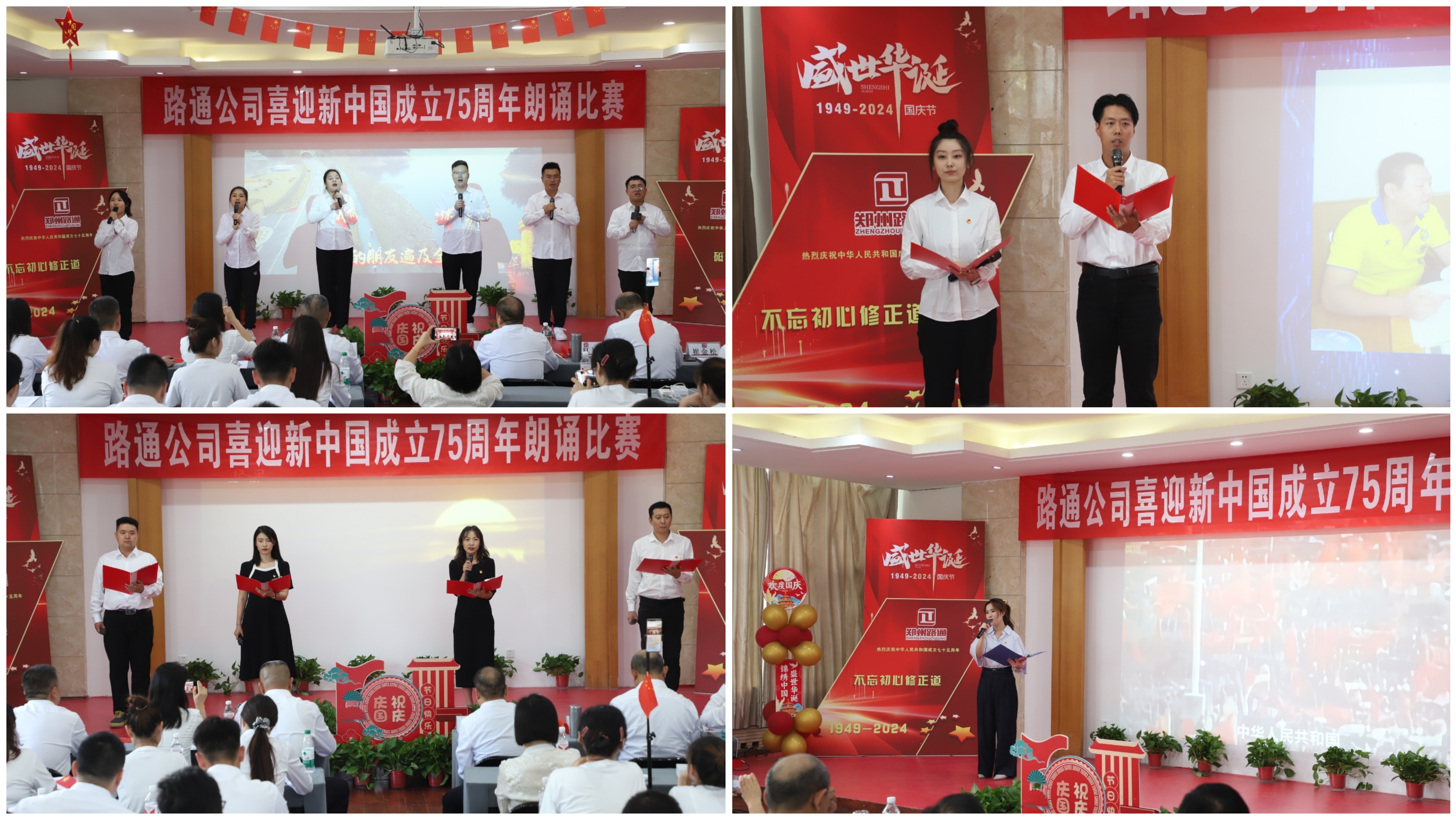 在中華人民共和國成立75周年到來之際,為抒發(fā)對(duì)祖國的美好祝愿,展現(xiàn)“不忘初心砥礪奮進(jìn)”新時(shí)代路通人的精神面貌。9月29日上午,路通公司在滎陽環(huán)翠峪職業(yè)技能培訓(xùn)中心隆重舉行喜迎新中國成立75周年朗誦比賽。