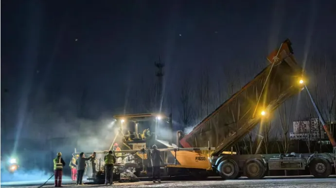 數(shù)九隆冬寒意濃。1月10日深夜,國道107線東移開封境(炎黃大道至許昌交界)新建工程施工項目瀝青攤鋪工程正上演了一場時間與速度的激烈角逐。在這寒氣籠罩大地的時刻,項目部全體參建者們,采取“白加黑”“五加二”的工作模式,奮戰(zhàn)在施工一線,將全部身心投入到搶工期的“戰(zhàn)斗”中,為此次攤鋪任務(wù)順利完成開啟了“加速鍵”。